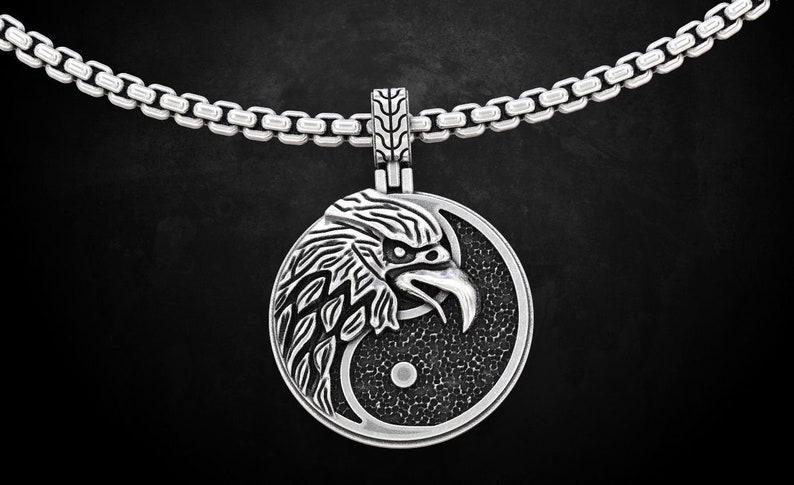 - Silver 925 kt metal Oxidized Pendant Eagle Yin Yang .